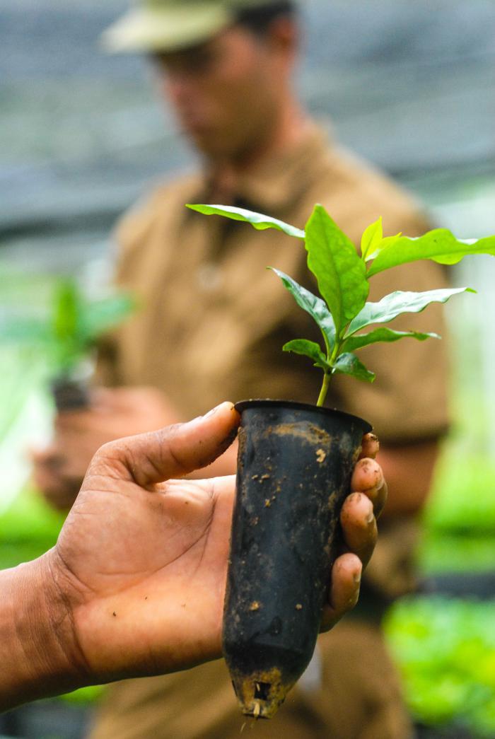 Muchas de las especies que se cultivan en estos lugares también provienen de la Estación Experimental Agroforestal. Acá «garantizamos la siembra, limpia y la poda de ese café», cuenta el mayor Obrei Velazco Fonseca, jefe de la granja estatal Cuatro Vientos.